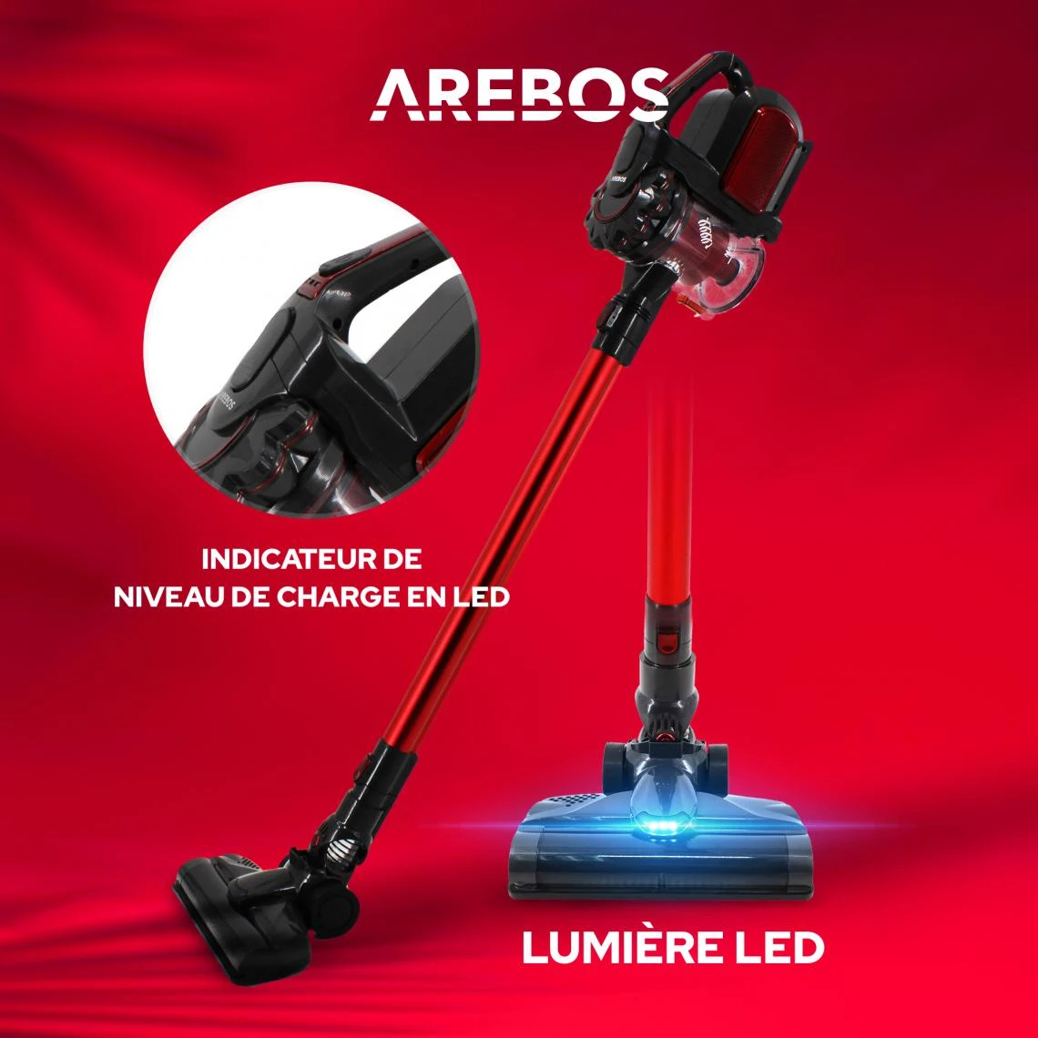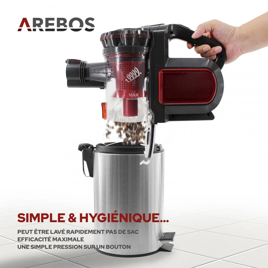 Points forts Arebos Aspirateur à Batterie Aspirateur 2en1 Chargeur Mural Sans Fil Sans Sac