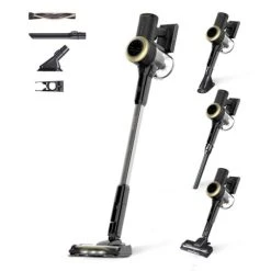 Accessoires fournis : 2 brossettes multi-usages intégrées et toujours à portée de main, une mini électrobrosse avec LEDs pour aspirer les tapis/moquettes, canapés, sièges de voiture et poils d’animaux, un suceur fente pour retirer la poussière dans les zones étroites, un large suceur ameublement plat pour désincruster les surfaces plates et tissus d’ameublement, une base de charge et un filtre supplémentaire.