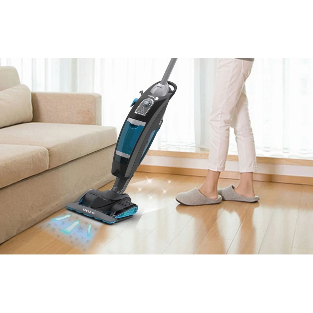 Cet appareil possĂšde une autonomie de 35 minutes et, une fois branchĂ©, son rayon d’action va jusqu’Ă 8 mĂštres pour nettoyer efficacement mĂȘme les grandes surfaces.