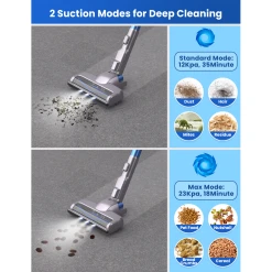 ĂquipĂ© de 6 batteries au lithium de 2200 mAh, cet aspirateur sans fil a une puissance dâaspiration plus forte et une durĂ©e de vie de la batterie. Batterie au lithium Ă haute performance et faible attĂ©nuation â Offre une libertĂ© dâutilisation de 18 minutes Ă 35 minutes â Nettoyez votre grand appartement.