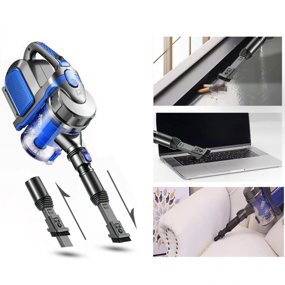 Points forts Powermat PAZ Aspirateur balai sans sac 2en1 manche télescopique amovible 900W