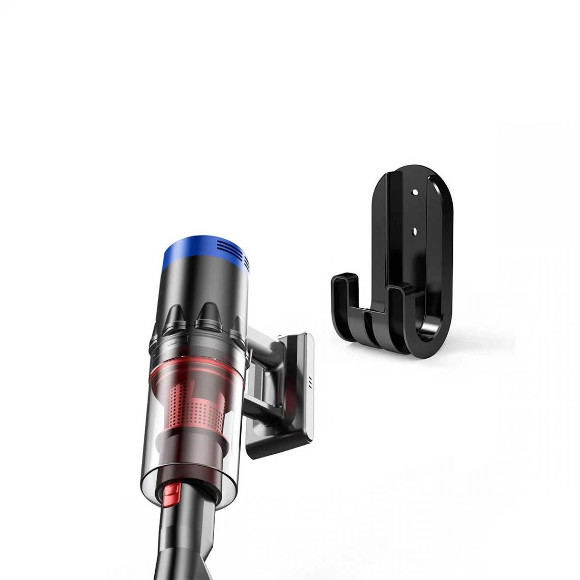 Il comprend un dispositif de fixation murale. Il est constituĂ© dâune base qui maintient lâaspirateur en position verticale.
