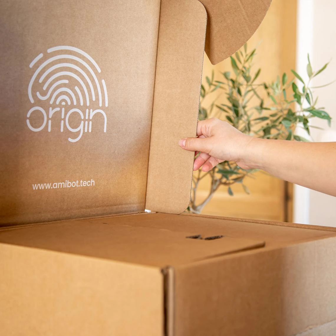 Avec Origin, AMIBOT pousse sa dĂ©marche Ă©co-responsable jusqu’au packaging du produit et Ă la documentation fournie : diminution des plastiques, utilisation de cartons 100% recyclables, fabriquĂ©s en France et issus de forĂȘts contrĂŽlĂ©es et responsables (certification FSC). Tous les papiers inclus avec Origin sont recyclĂ©s et/ou recyclables (guides d’utilisation imprimĂ©s en France, certification PEFC).