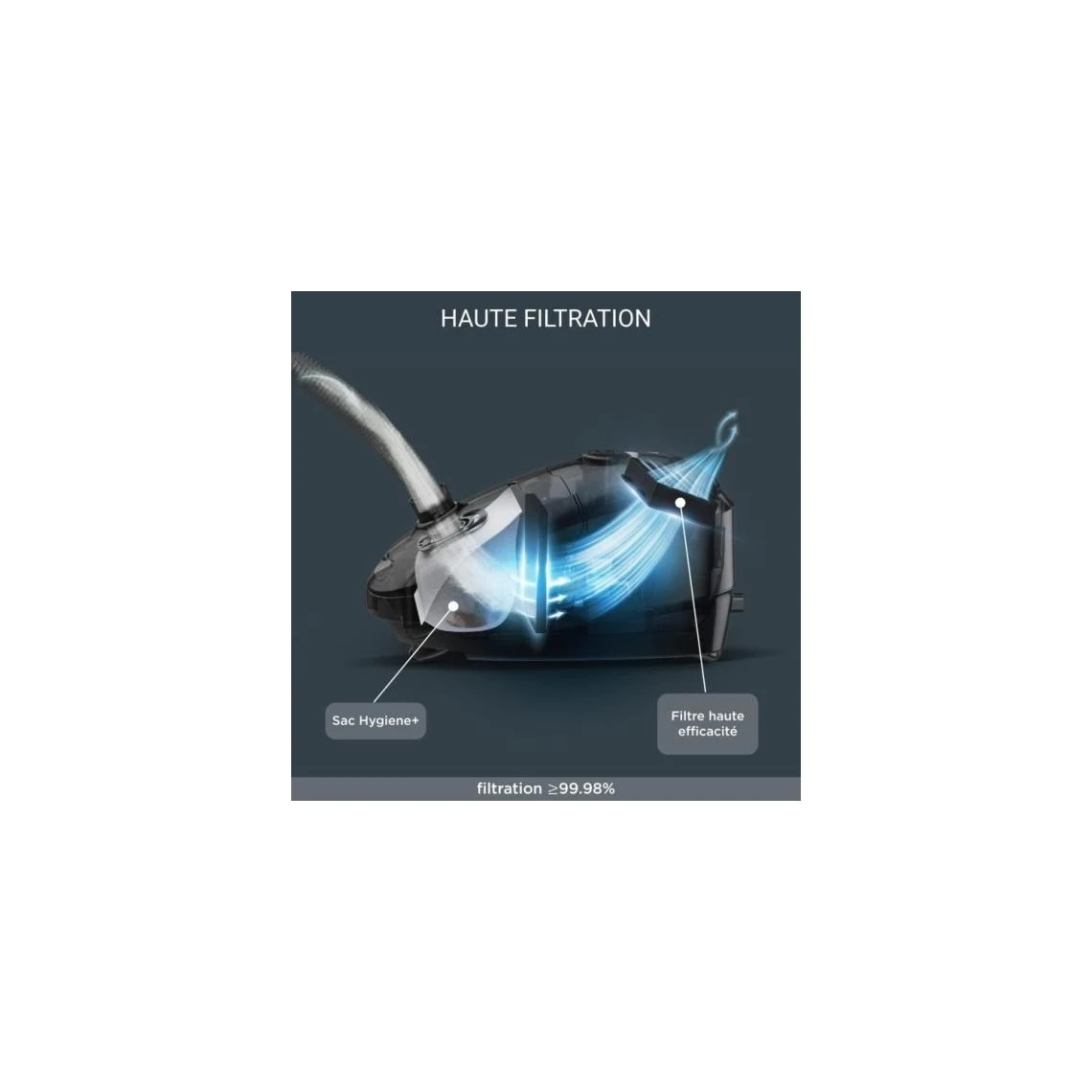Points forts Rowenta ROWENTA RO3143EA Aspirateur avec sac, Moteur basse consommation, Capacité 4,5 L, Nombreux accessoires, Power XXL Parquet, Bleu/gris