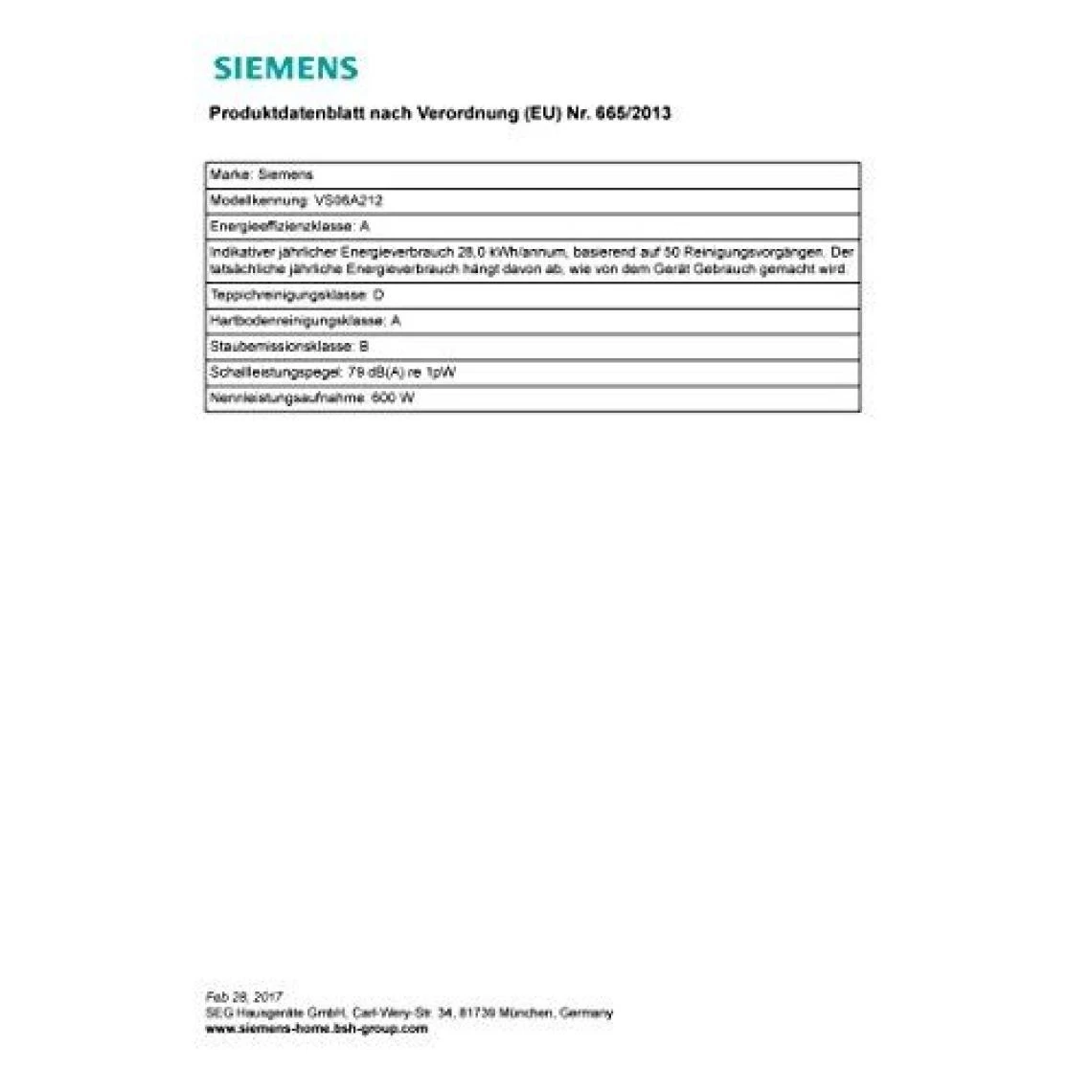 Points forts Siemens Siemens vs06 a212 Aspirateur traîneau avec sac